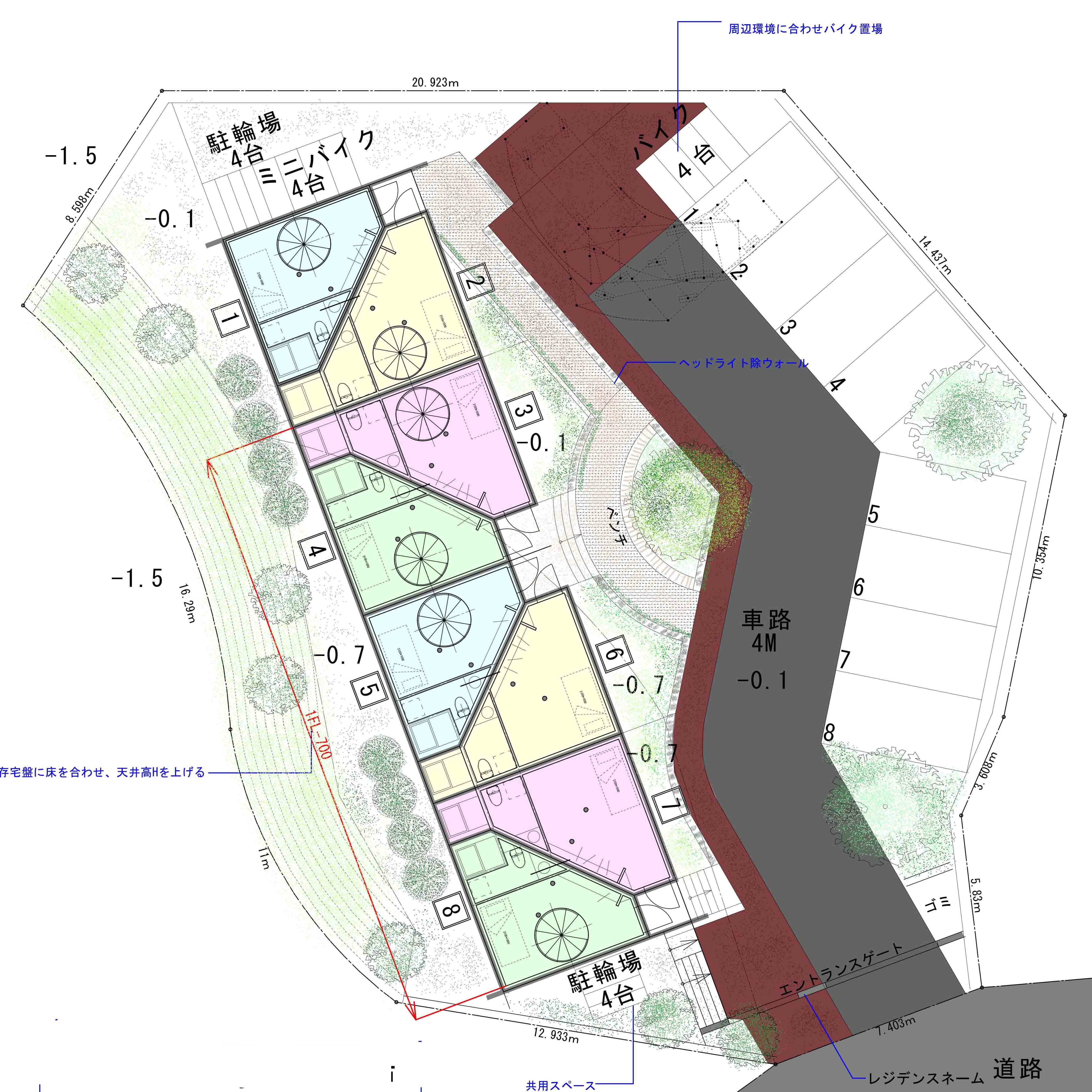 先日、某コンペサイトで1等を獲得した集合住宅です。