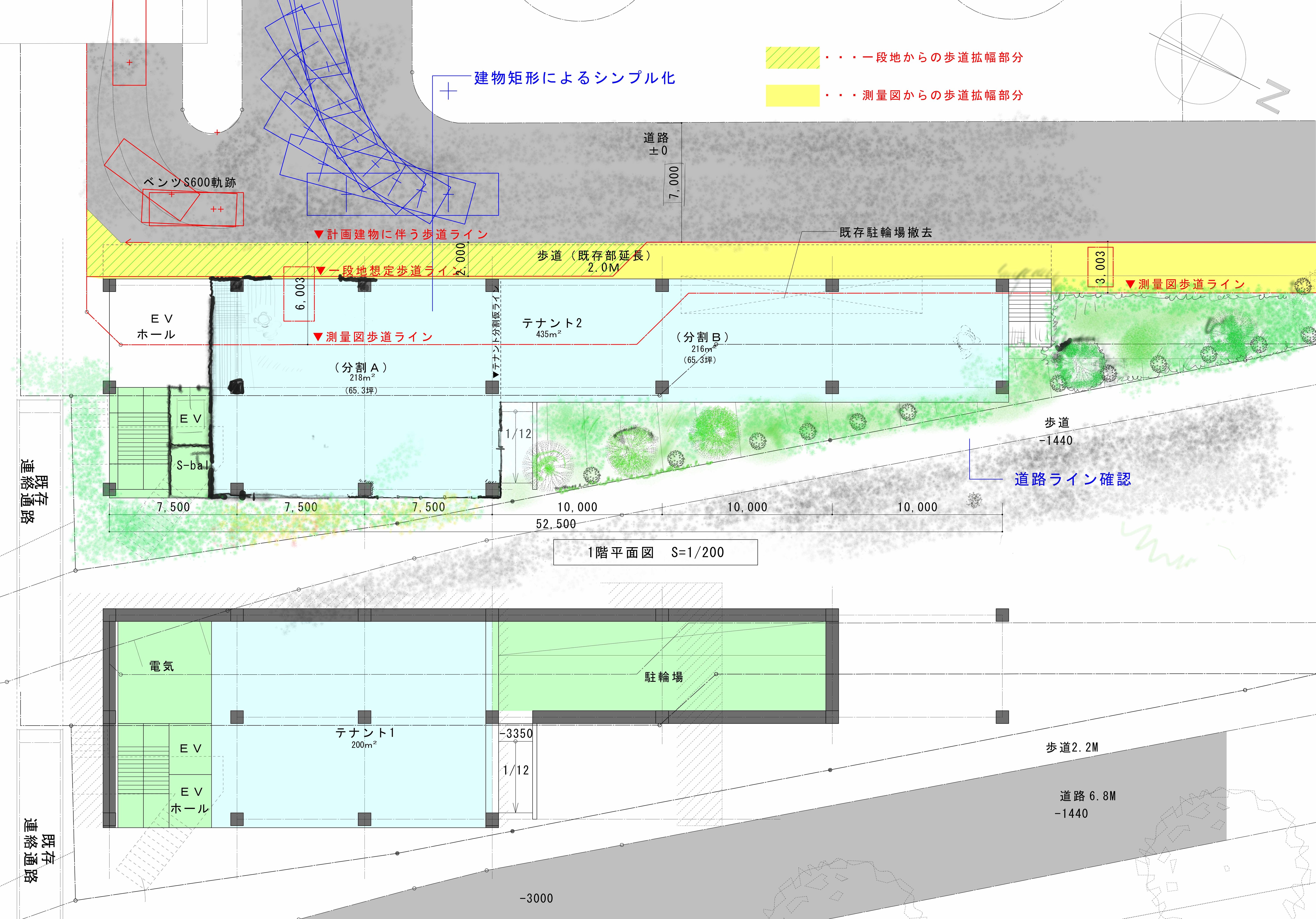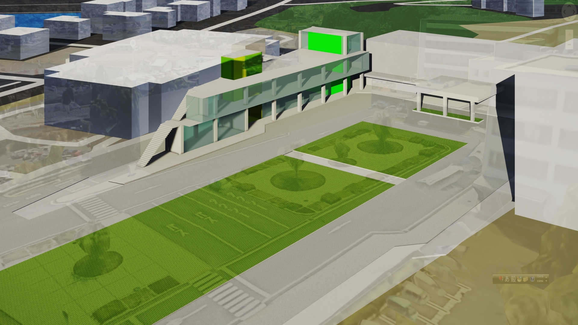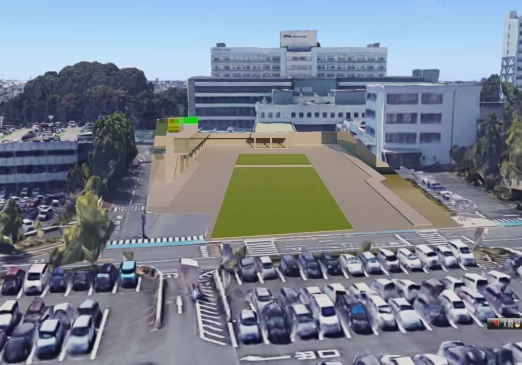 狭小三角地のプラン経過,グーグルマップから所得した俯瞰図にパースを合成してみました。