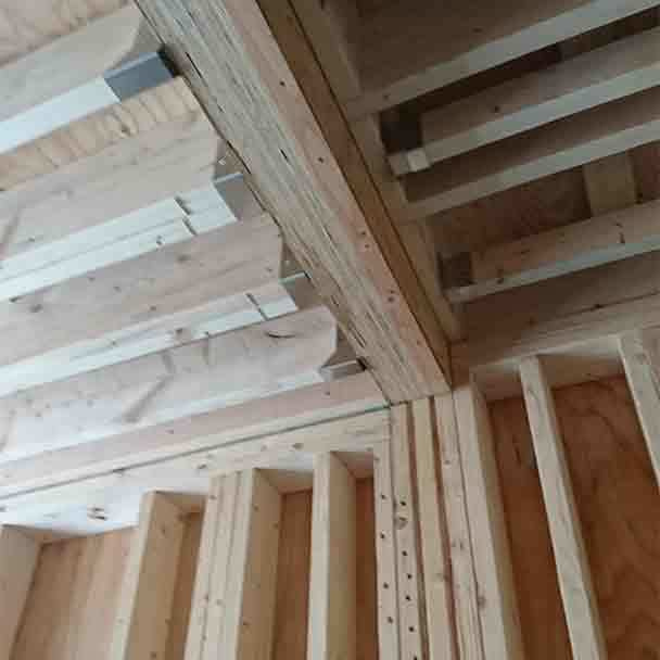 残念ながら2×4材の木造は仕上げ材には出来ず隠れてしまいます。