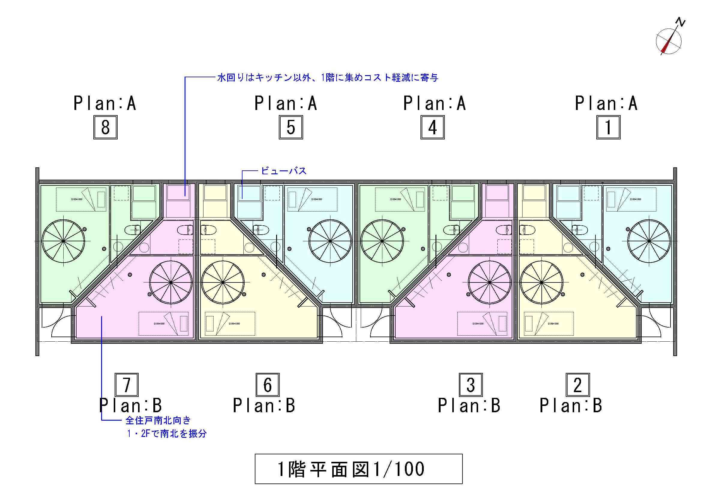1・2階までをコンクリート構造とし3階以上を木造(2×4)としています